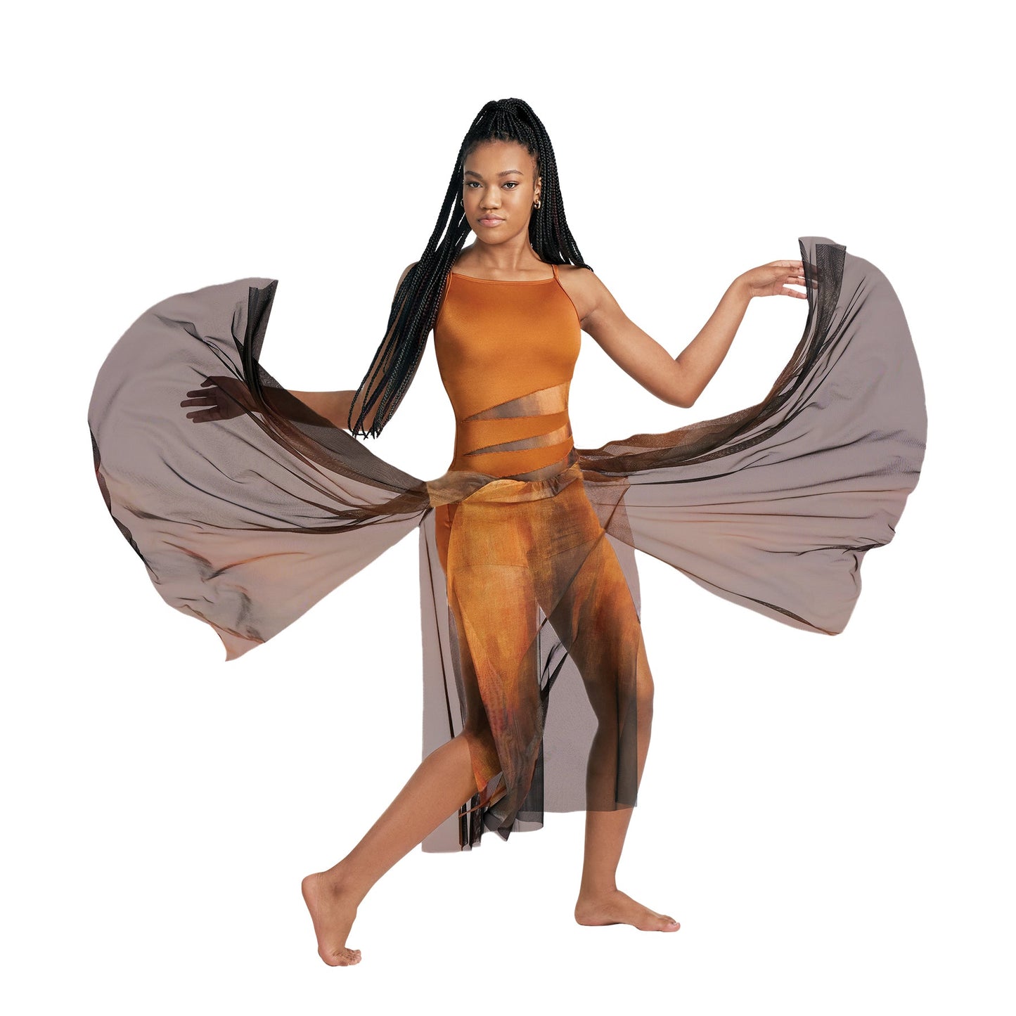 Boy cut jumpsuit with custom sublimated mesh insets and skirt. Matching male companion available.