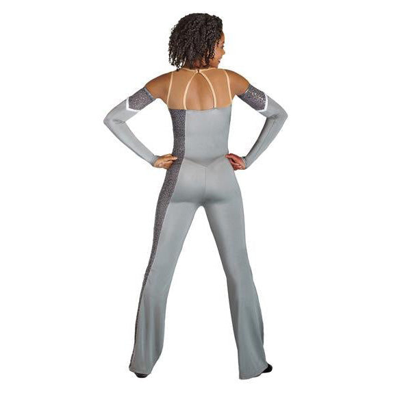 Jumpsuit features spandex combined with micro sequin and mystique binding. Stretch mesh inset. Keyhole back. Gloves/Accessories sold separately. Matching male companion available.