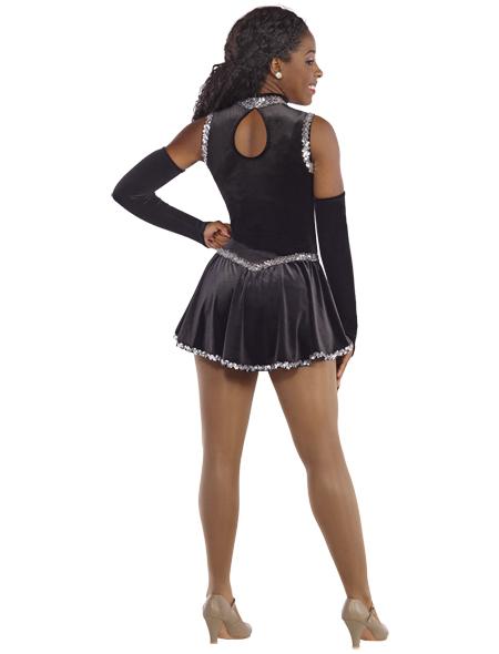 Ultra sequin and plush velvet dress with sequin trim. Solid back has keyhole opening. Attached trunks. Gloves/Accessories sold seperately.
