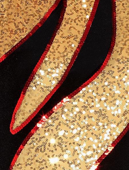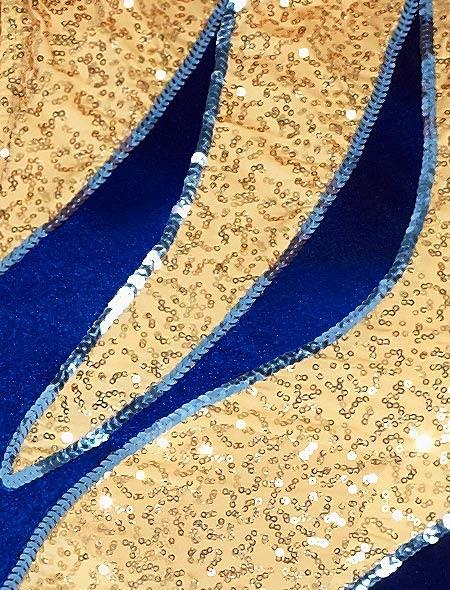 Plush velvet or 4-way stretch spandex teamed with micro sequins on this cute dance dress. Attached trunks. Solid back has keyhole. Gloves/Accessories sold separately.